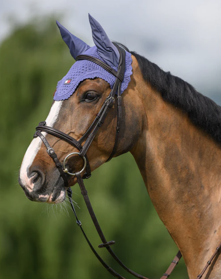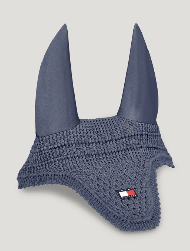 Ce bonnet crocheté en coton protège le cheval des insectes tout en restant respirant. Les oreilles légères en polyester stretch assurent confort et liberté de mouvement. Avec patch logo Tommy Hilfiger et liseré contrastant, il allie style, maintien et praticité, parfait pour entraînement ou compétition.