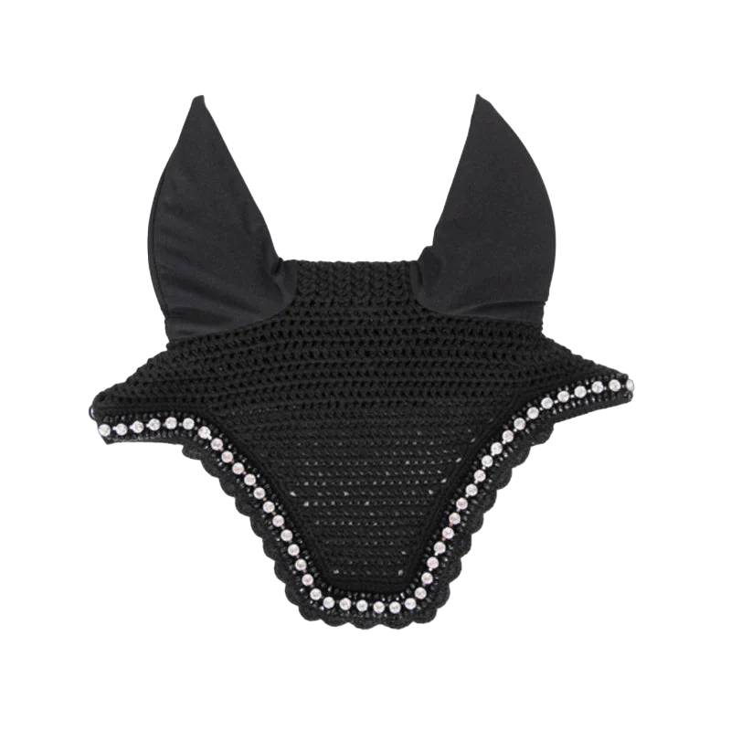 Sa coupe élégante est sublimée par un liseret orné de grosses pierres brillantes et de perles, pour un style qui attire tous les regards. Les oreilles en tissu extensible assurent un confort optimal à votre cheval. La forme Wellington avec encolure prolongée empêche le bonnet de glisser sous la bride.