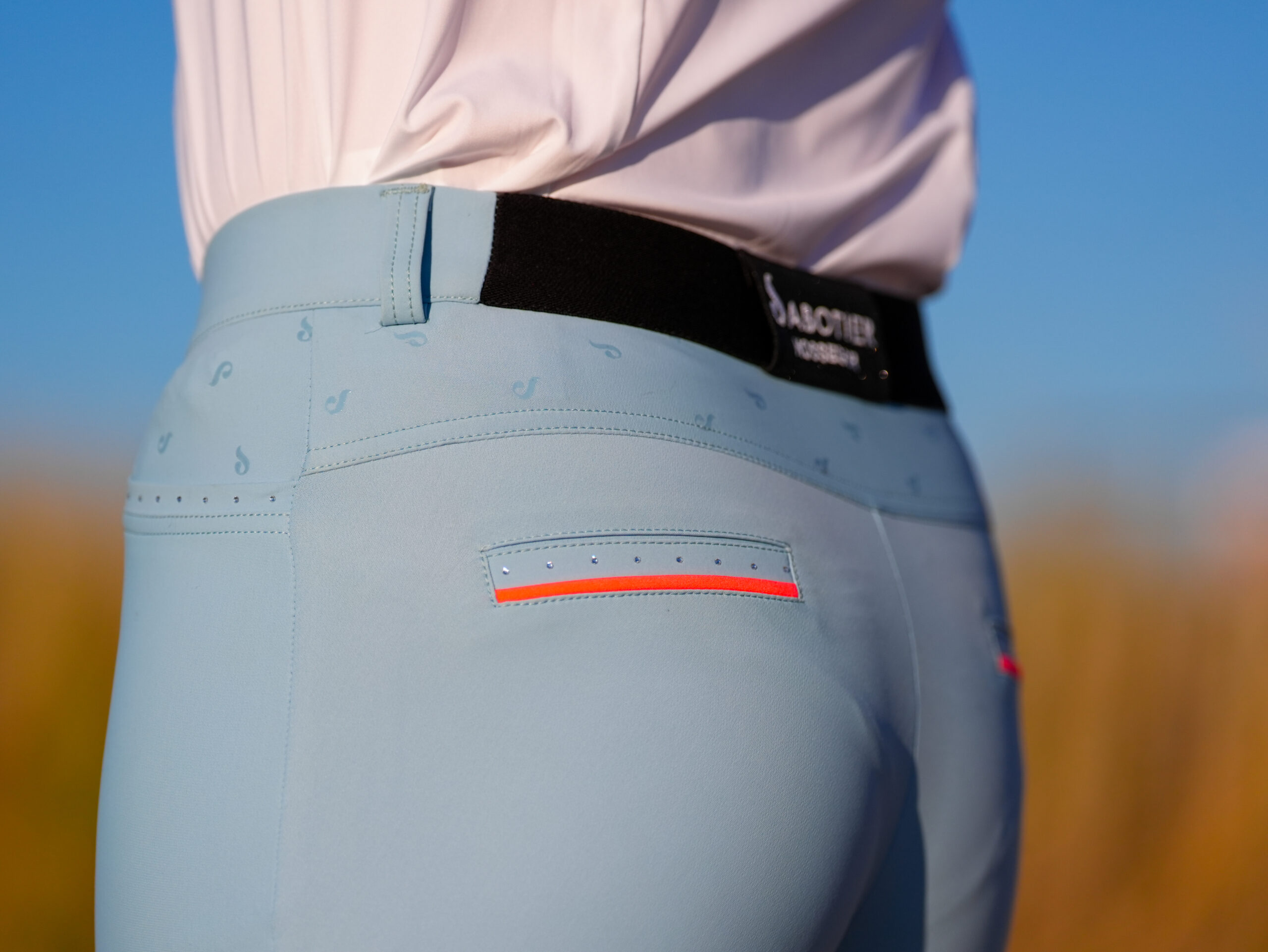 Pour une meilleure stabilité à cheval, ce pantalon est doté d’applications de grips à l’intérieur des genoux, offrant une adhérence efficace tout en conservant une grande liberté de mouvement. La fermeture avec agrafe et bouton assure un maintien sûr et une finition soignée.