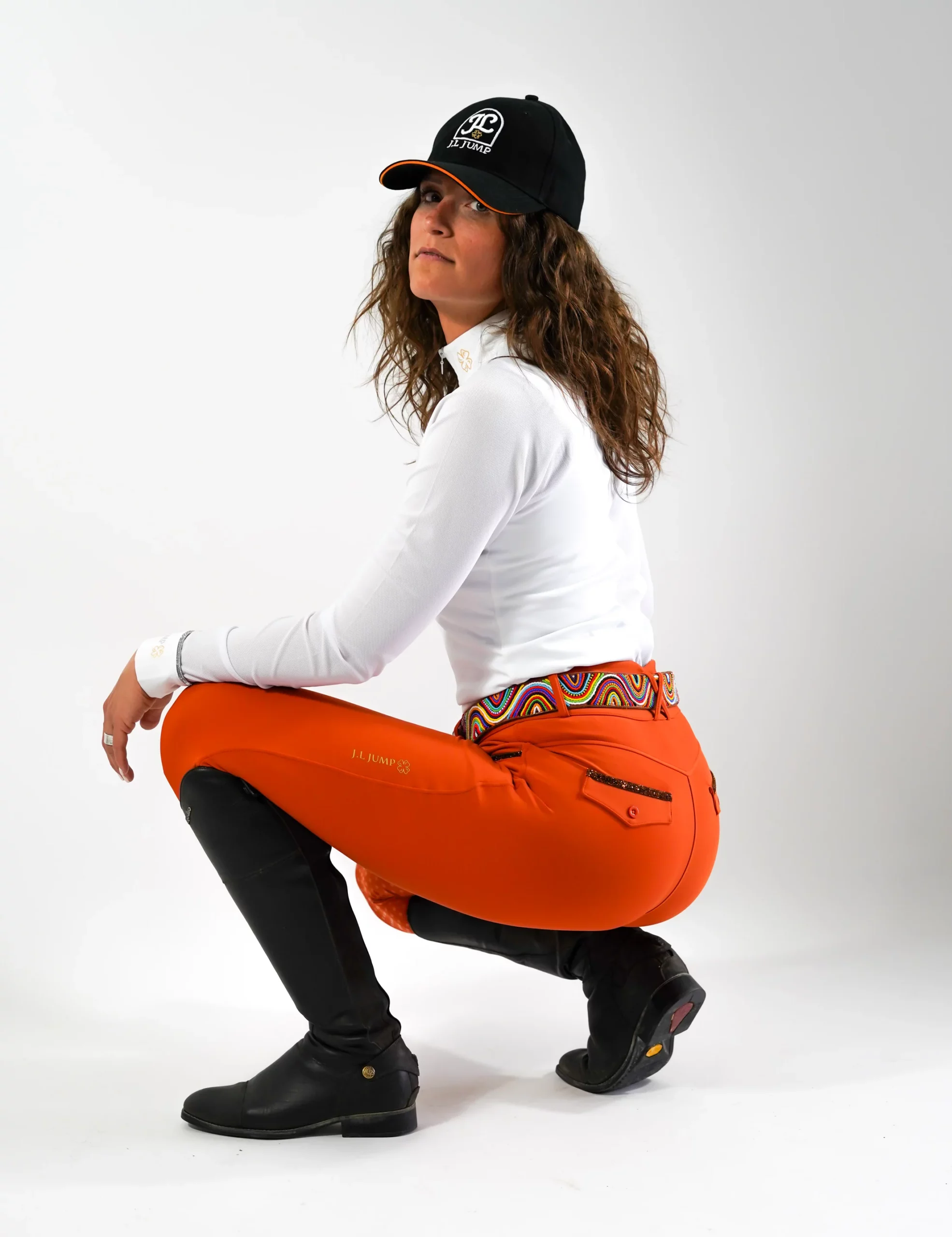 Sa teinte terracotta, inspirée des tendances 2026, offre une note chaude et sophistiquée, facilement assortie à vos hauts et vestes d’équitation. Un logo doré discret vient parfaire l’ensemble en apportant une touche de raffinement supplémentaire.
