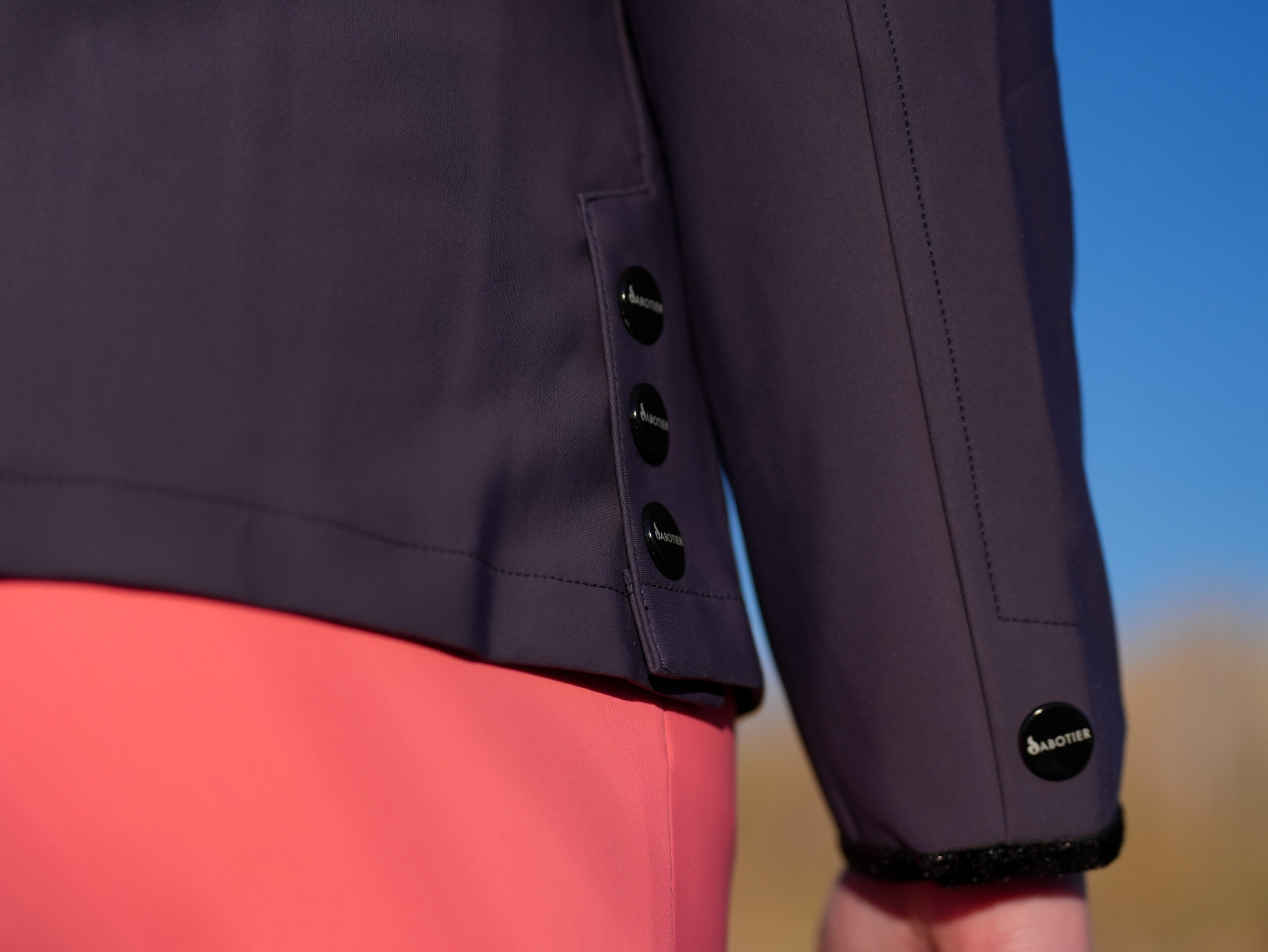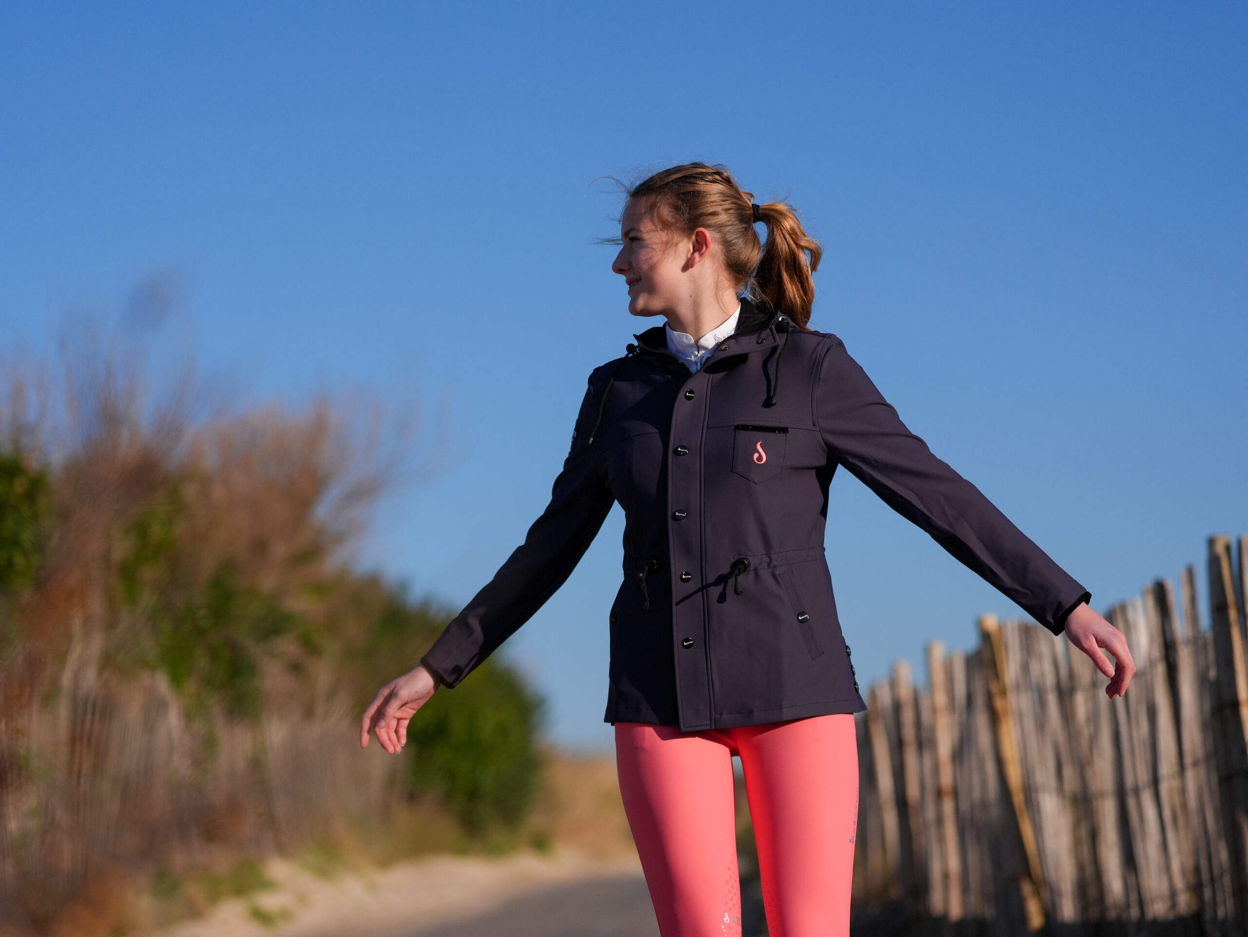 Sa fermeture par zip complétée de pressions assure une protection optimale contre le vent et la pluie. Pensée pour s’adapter à toutes les morphologies, elle dispose de cordons d’ajustement à la taille pour souligner la silhouette, ainsi que de fentes d’aisance sur les côtés avec trois pressions pour plus de liberté de mouvement, notamment à cheval.